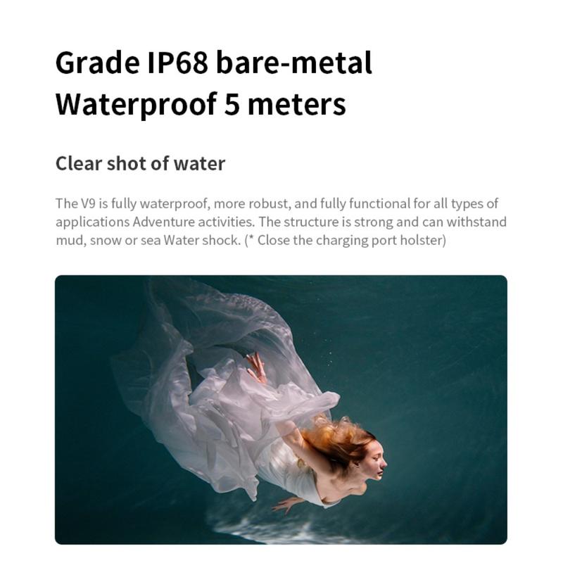 La caméra d'action VIRAN V9 4K 60FPS WiFi est conçue pour les courses rapides, les aventures en plein air et l'enregistrement quotidien d'actions. Elle combine un large champ de vision de 170 degrés avec un capteur d'image haute résolution et un objectif à 6 verres pour capturer des images nettes et immersives. Sa conception à double écran facilite le cadrage, avec un écran tactile HD principal de 2 pouces et un écran IPS frontal de 1,4 pouce pour les selfies et les commandes rapides. Son système anti-tremblement robuste permet de garder des vidéos plus fluides pendant les secousses et les mouvements, tandis que son indice d'étanchéité IP68 jusqu'à 5 m vous permet de filmer sous la pluie, dans les éclaboussures et lors d'activités aquatiques sans boîtier supplémentaire. Grâce au WiFi intégré et au contrôle par application, vous pouvez prévisualiser, gérer et partager rapidement des clips depuis votre téléphone.