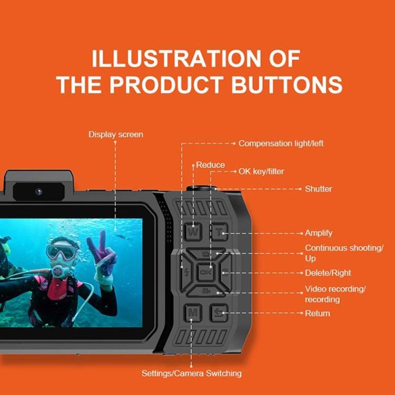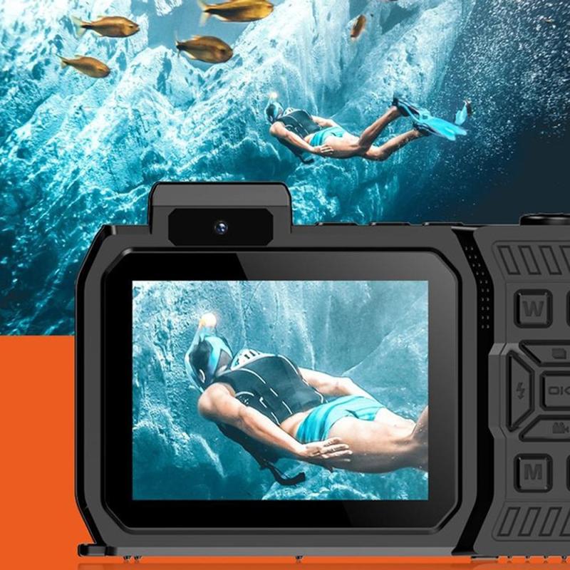 • Caméra d'action étanche à double écran D50 - Caméra de sport 65MP certifiée IP68 avec écrans de 2,88 pouces et 1,44 pouces