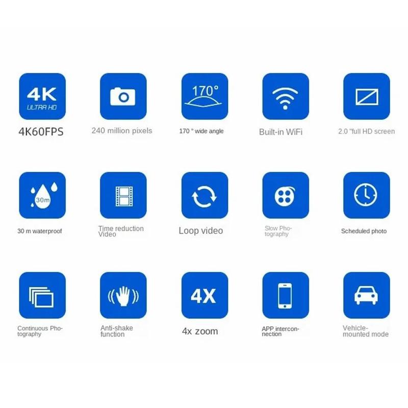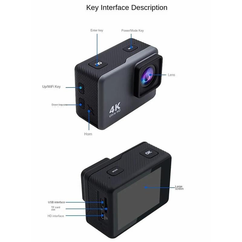 • Caméra d'action F300AB-R 2 pouces 4K WiFi avec écran tactile et boîtier sous-marin 30 m