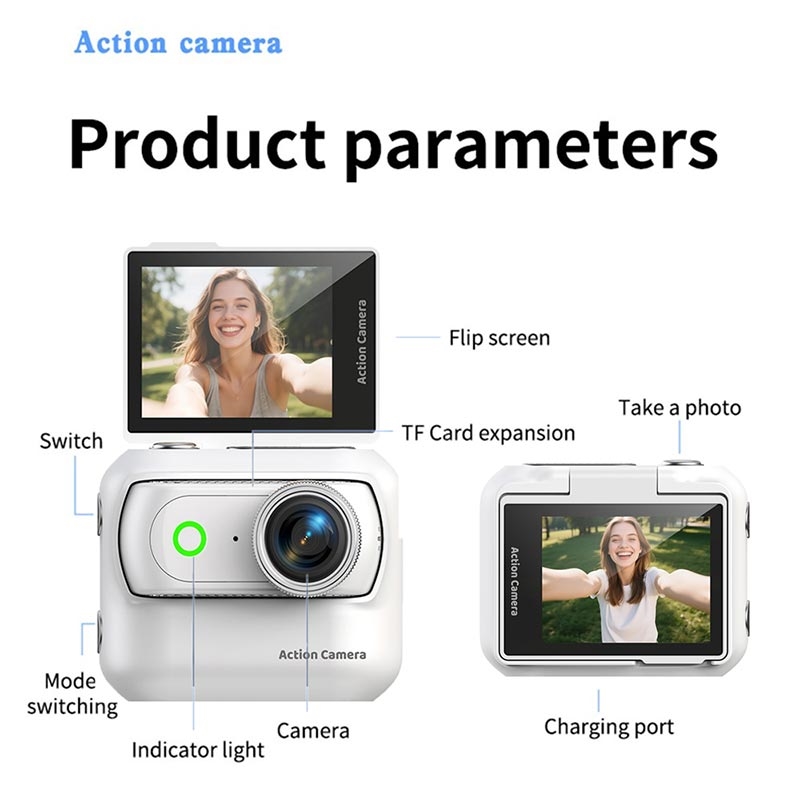 Conçue pour offrir une grande flexibilité, cette mini-caméra de sport prend en charge plusieurs modes de prise de vue, notamment la vidéo, la photo, le ralenti, le time-lapse et les effets miroir ND, ce qui la rend adaptée aussi bien à l'enregistrement occasionnel qu'à la création de contenus plus créatifs. Son design portable vous permet de la fixer à une lanière de cou, une casquette, un casque, un guidon de vélo ou d'autres surfaces compatibles, tandis que la batterie longue durée vous permet de filmer plus longtemps lorsque vous êtes en déplacement.