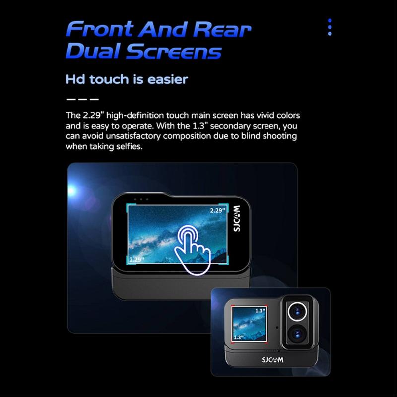 • Caméra d'action SJCAM SJ20 à double objectif - 4K30, double écran, objectif de vision nocturne, stabilisation sur 6 axes, étanche jusqu'à 5 m (30 m avec boîtier), Wi-Fi 2,4/5 GHz, USB-C