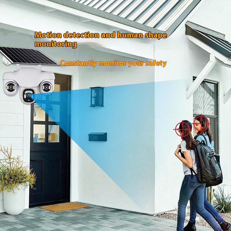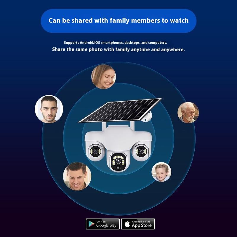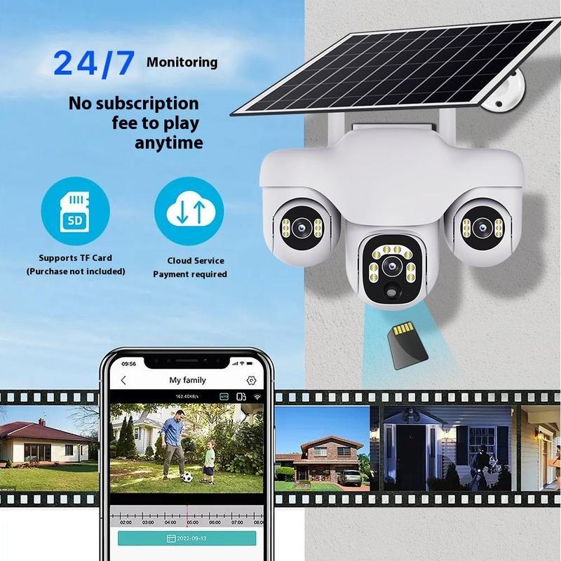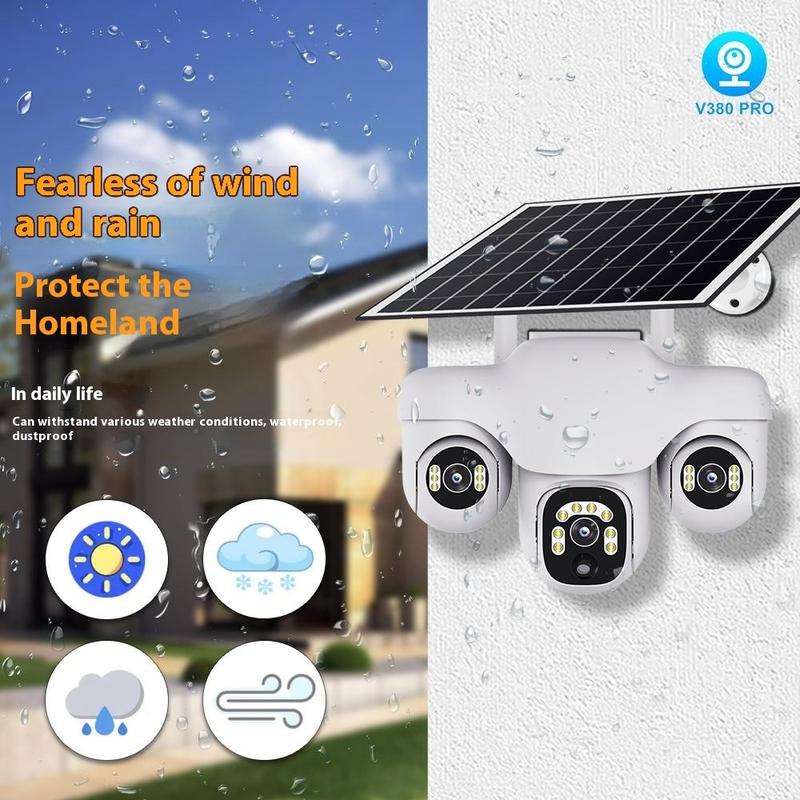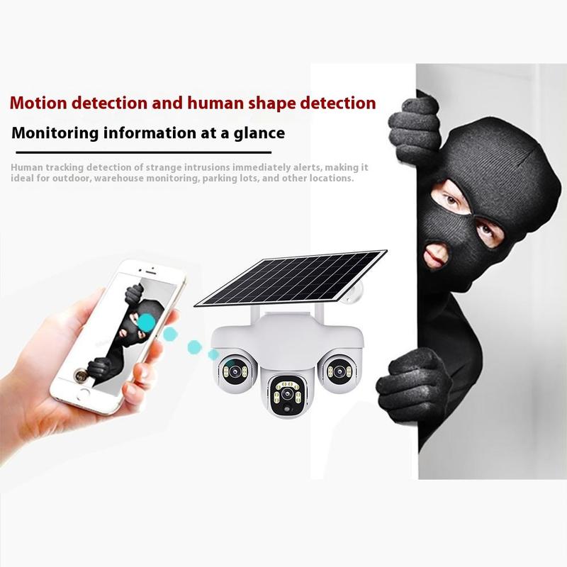 • Caméra de sécurité PTZ VTS31 V380 à énergie solaire avec triple objectif - Caméra de surveillance WiFi d'extérieur avec détection de mouvement