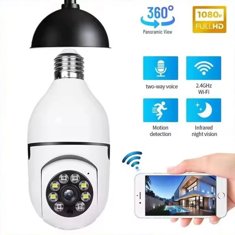 • Caméra de sécurité WiFi 1080p avec douille E27 - Caméra PTZ panoramique à 360° avec vision nocturne et communication audio bidirectionnelle