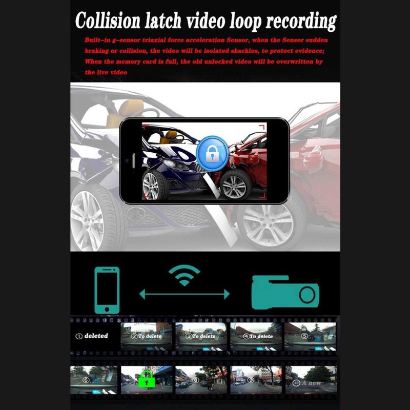 • Caméra embarquée DVR G10 1080P HD pour voiture - Enregistreur vidéo WiFi, vision nocturne, grand angle 140°, moniteur de stationnement