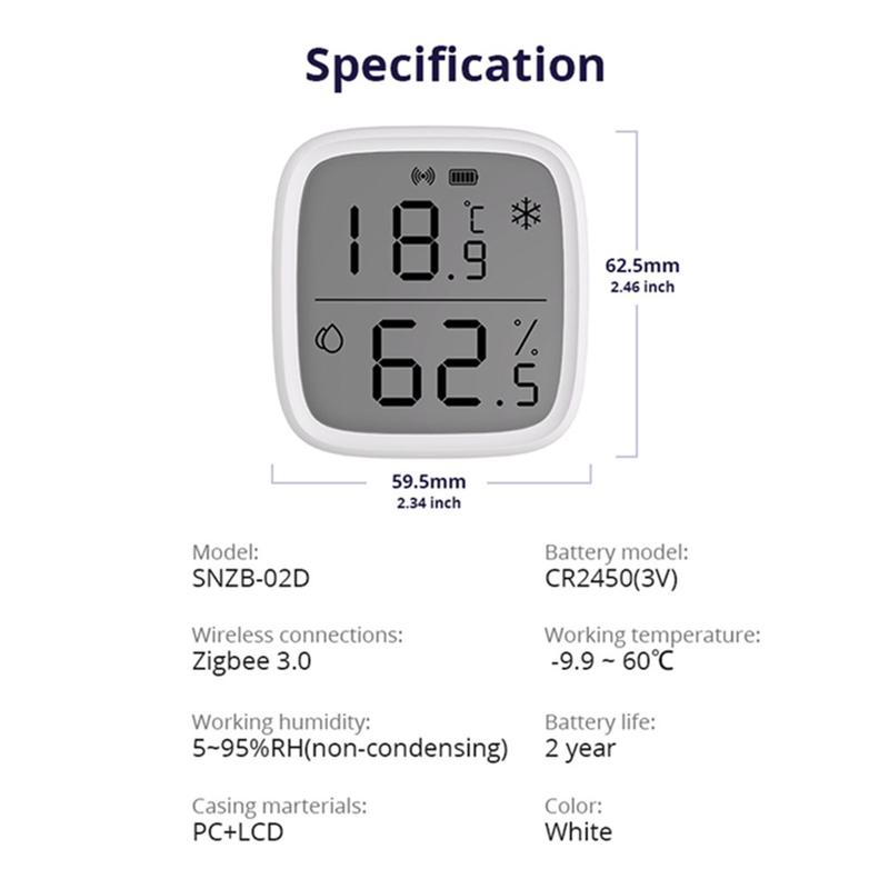 • Capteur intelligent de température et d'humidité Sonoff SNZB-02D ZigBee 3.0 avec écran LCD - CR2450 inclus