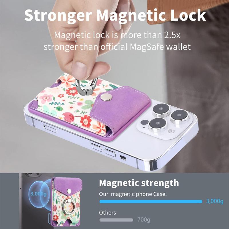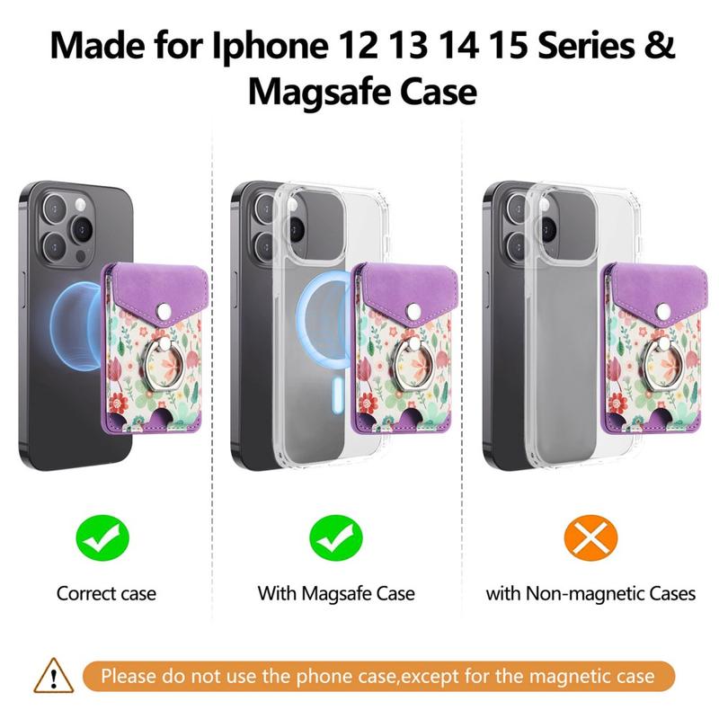 Ce porte-cartes est idéal pour les utilisateurs qui recherchent la praticité sans sacrifier le style. Il garde vos cartes en sécurité, améliore la manipulation du téléphone grâce au support d'anneau, et ajoute une commodité mains libres grâce à sa fonction kickstand. La fixation magnétique solide garantit une utilisation quotidienne en toute confiance, même en déplacement.