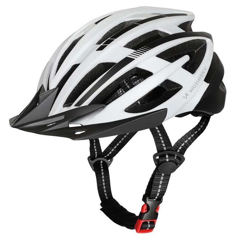 Casque de vélo VTT Wozinsky avec feu arrière LED USB - L - Blanc / Noir