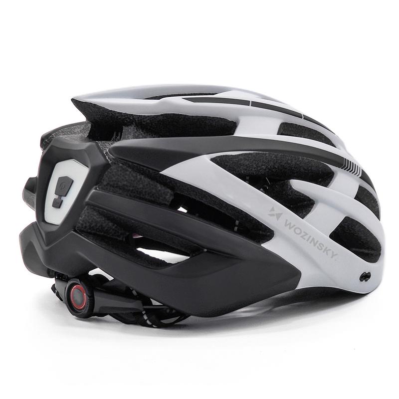 Casque de vélo VTT Wozinsky avec feu arrière LED USB - M - Blanc / Noir