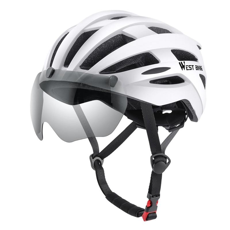Casque de vélo West Biking YP0708100 avec lunettes de soleil magnétiques - Blanc