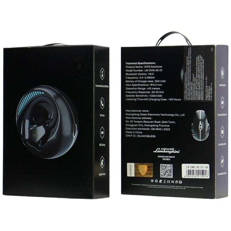 Casque sans fil à oreilles ouvertes Lamborghini D1 - Bluetooth 6.0 - Noir