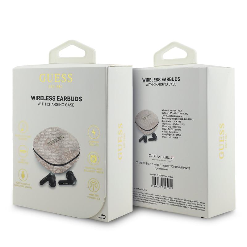 • Casque True Wireless Guess 4G Script Logo ENC - Écouteurs Bluetooth 5.4 avec étui de chargement et réduction du bruit