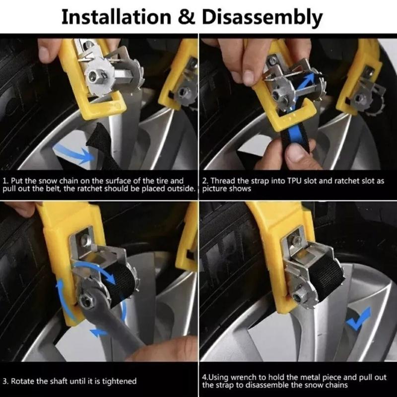 Grâce aux boucles de verrouillage et à la fixation semi-intelligente, l'installation est rapide et sans problème. Vous pouvez les mettre ou les enlever en quelques minutes sans l'aide d'un professionnel, ce qui les rend pratiques pour les situations d'urgence sur le bord de la route.