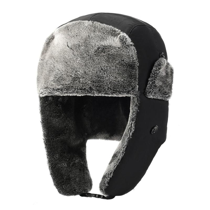 Chapeau de trappeur d'hiver épais doublé de polaire - Noir