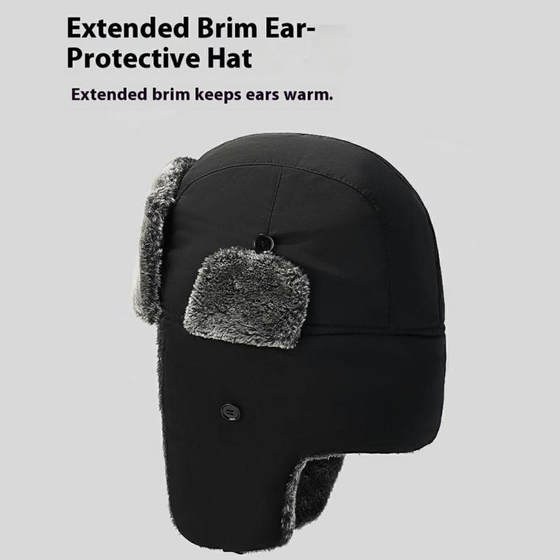 • Chapeau de trappeur d'hiver - Bonnet d'extérieur chaud et épais doublé de laine polaire avec protection des oreilles et coupe-vent