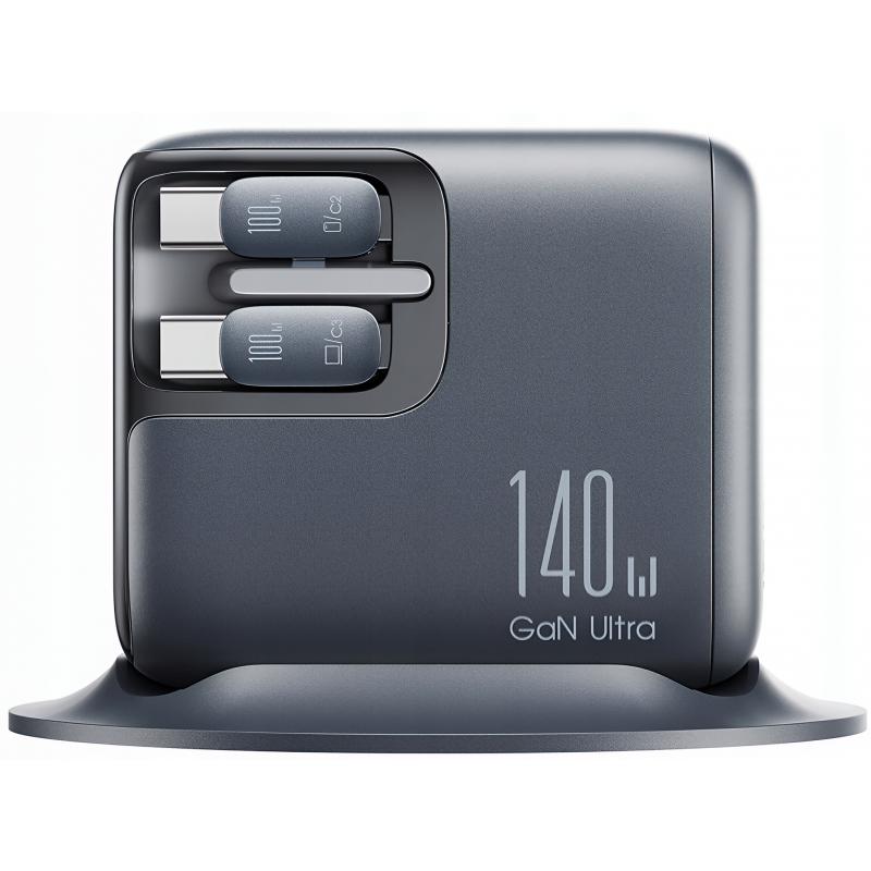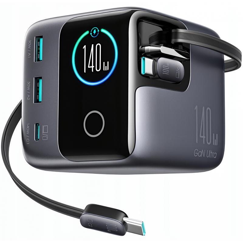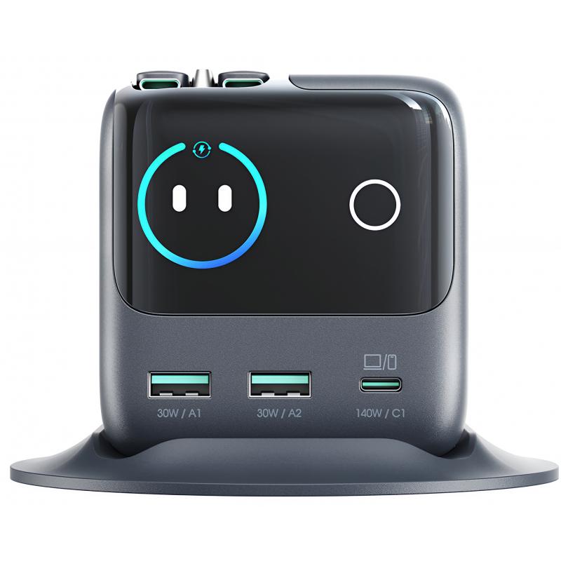 Chargeur de bureau Joyroom JR-TRD01 Podix 140W à technologie GaN, avec câbles USB-C rétractables et écran LCD