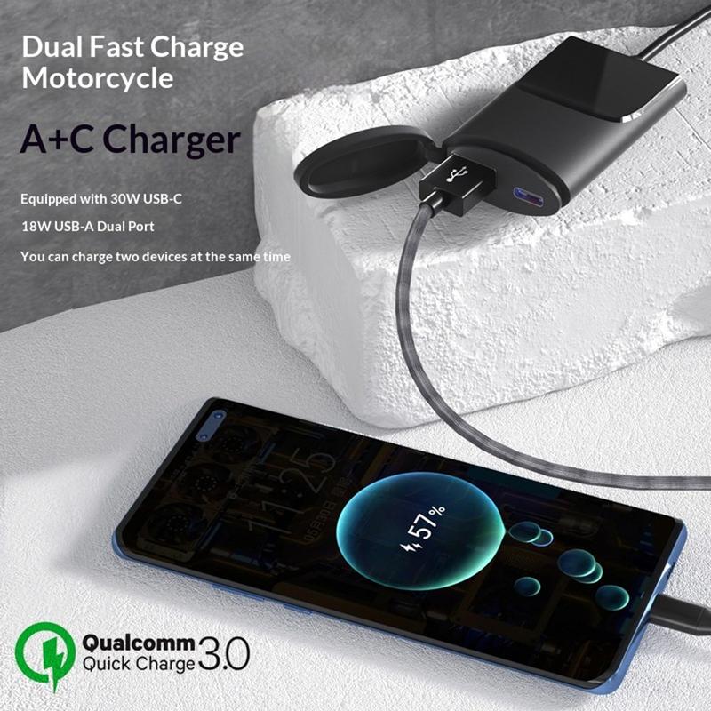 Chargeur de téléphone pour moto - 30W USB-C PD, 18W USB-A - Noir