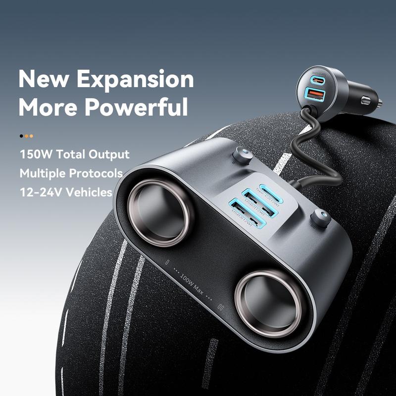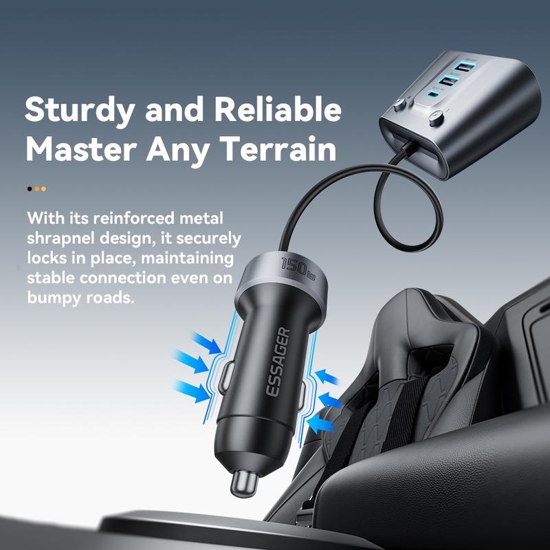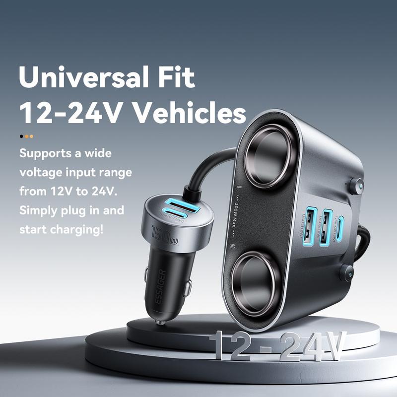 Le répartiteur ESSAGER 150W combine une puissance de sortie élevée, une technologie de charge intelligente et une qualité de construction robuste dans une unité compacte. Avec deux ports d'extension, cinq sorties USB et des fonctions de sécurité avancées, c'est un compagnon de charge fiable et polyvalent pour n'importe quel véhicule.