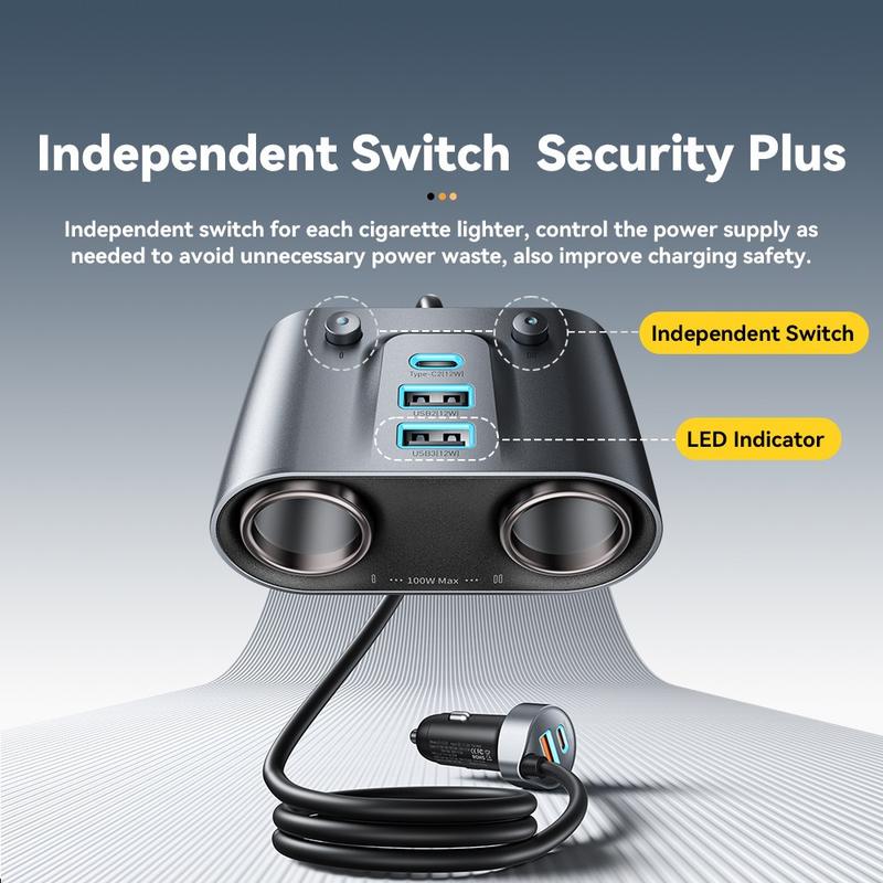 Avec une puissance totale de 150 W, cet adaptateur prend en charge les ordinateurs portables, les tablettes, les smartphones, les appareils GPS, les caméras de bord et bien plus encore. La conception du ressort métallique renforcé assure un maintien ferme et sûr dans la prise de l'allume-cigare, tandis que les interrupteurs indépendants et la protection contre les basses températures garantissent un fonctionnement sûr à tout moment.
