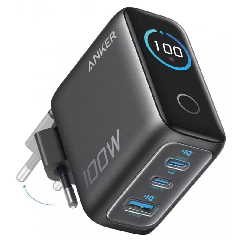 Chargeur mural Anker 100W GaN avec écran intelligent - Gris