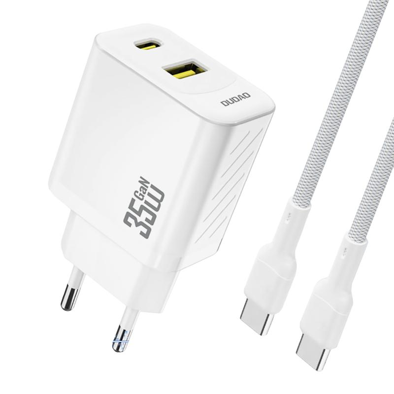 • Chargeur mural Dudao A27 MaxC 35W GaN - Chargeur rapide USB-C et USB-A avec câble USB-C de 1 m