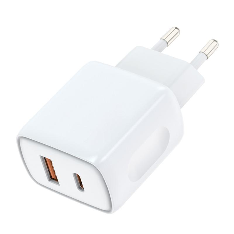Chargeur mural rapide Amorus PD – 20 W USB-C, 18 W USB-A – Blanc
