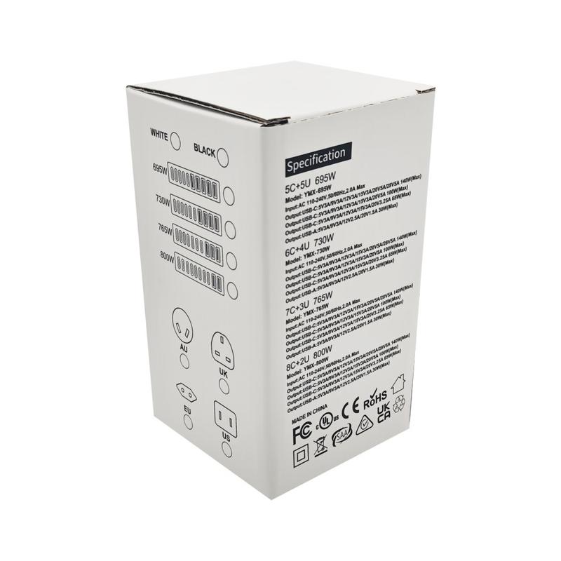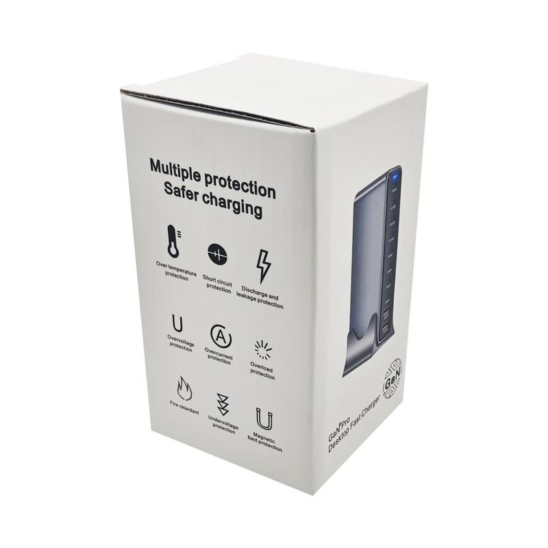 Alimentez tout votre bureau à partir d'un seul hub compact grâce à cette station de recharge de bureau GaN de 800W. Conçue pour les configurations à forte demande, elle combine plusieurs sorties USB-C et USB-A afin que vous puissiez recharger simultanément vos ordinateurs portables, tablettes, téléphones et accessoires, sans avoir à utiliser plusieurs adaptateurs. La technologie GaN permet d'obtenir un rendement élevé avec une faible production de chaleur, ce qui en fait un choix judicieux pour les bureaux à domicile, les studios, les ateliers de réparation et les zones de recharge partagées.