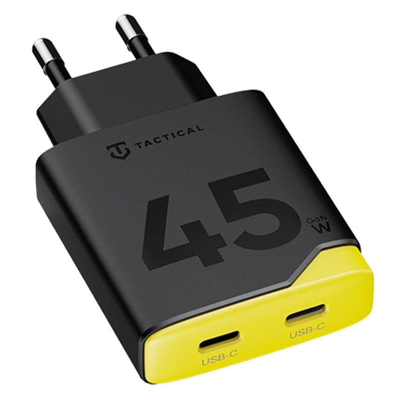 Chargeur rapide Tactical Minimi 45W CC GaN - 2 ports USB-C - Noir / Jaune