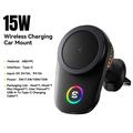 • Chargeur sans fil magnétique Essager 15W avec support pour voiture, ventilateur de refroidissement, éclairage RGB et fixation pour grille d'aération - Compatible MagSafe