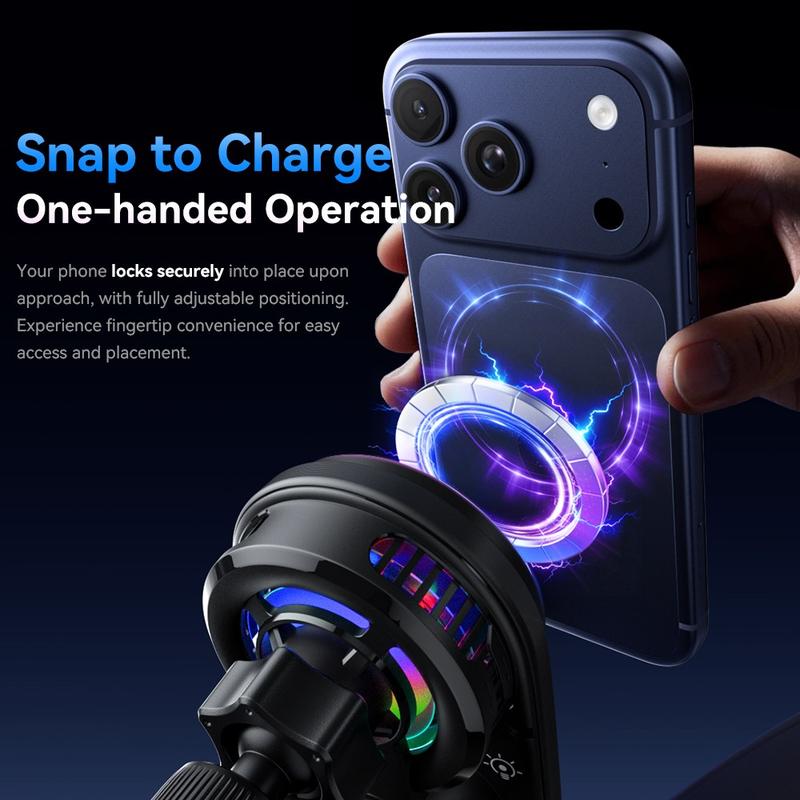 C'est bien plus qu'un simple support de voiture. Il vous offre une recharge rapide, une fixation magnétique solide et un moyen plus sûr de garder votre téléphone à portée de vue pendant que vous conduisez. Le ventilateur de refroidissement intégré aide à maintenir des performances de recharge plus stables, et le clip de fixation à verrouillage est conçu pour rester bien en place même sur des routes accidentées. C'est une mise à niveau intelligente pour tous ceux qui souhaitent réduire l'encombrement des câbles, faciliter l'utilisation d'une seule main et bénéficier d'une installation embarquée plus haut de gamme.