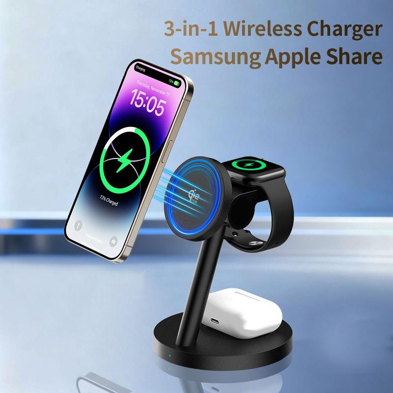 - Station de recharge sans fil 3-en-1 pour téléphone, montre connectée et écouteurs sans fil