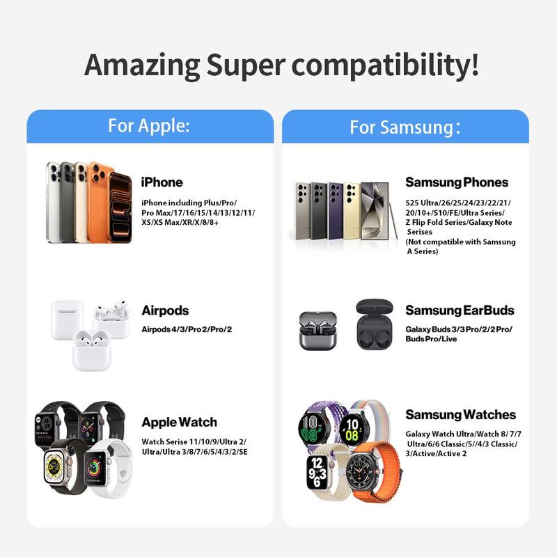 Utilisez-le sur votre table de chevet pour recharger votre téléphone, votre montre et vos écouteurs pendant la nuit, sur votre bureau pour un espace de travail plus ordonné, ou dans le salon pour des recharges rapides pendant la journée. Il est particulièrement utile pour les personnes qui souhaitent que leurs appareils soient rechargés, rangés et facilement accessibles à tout moment.
