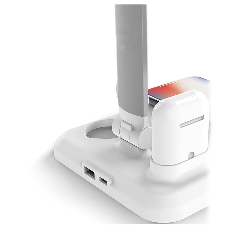 Un gadget tout-en-un fantastique et utile, qui s'adapte à chaque bureau ! Lisez un livre sous sa lumière douce pendant que vos appareils chargent sans fil ! Il comporte quatre fonctions pratiques : chargeur sans fil Qi avec trois emplacements de charge pour smartphone, Apple Watch et AirPods, et lampe de bureau LED. Le chargeur sans fil X1 vous permet de recharger trois appareils en même temps - iWatch, AirPods et téléphone.
