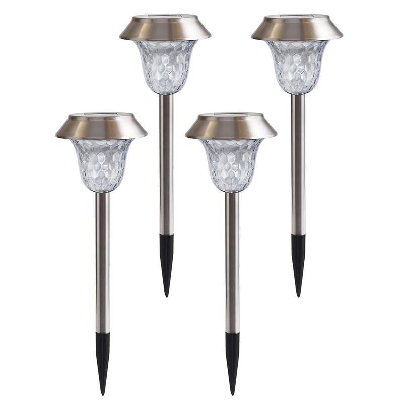CIS-57453A Lot de 4 lampes solaires en acier inoxydable pour chemins de jardin - IP65 - Blanc chaud et RVB