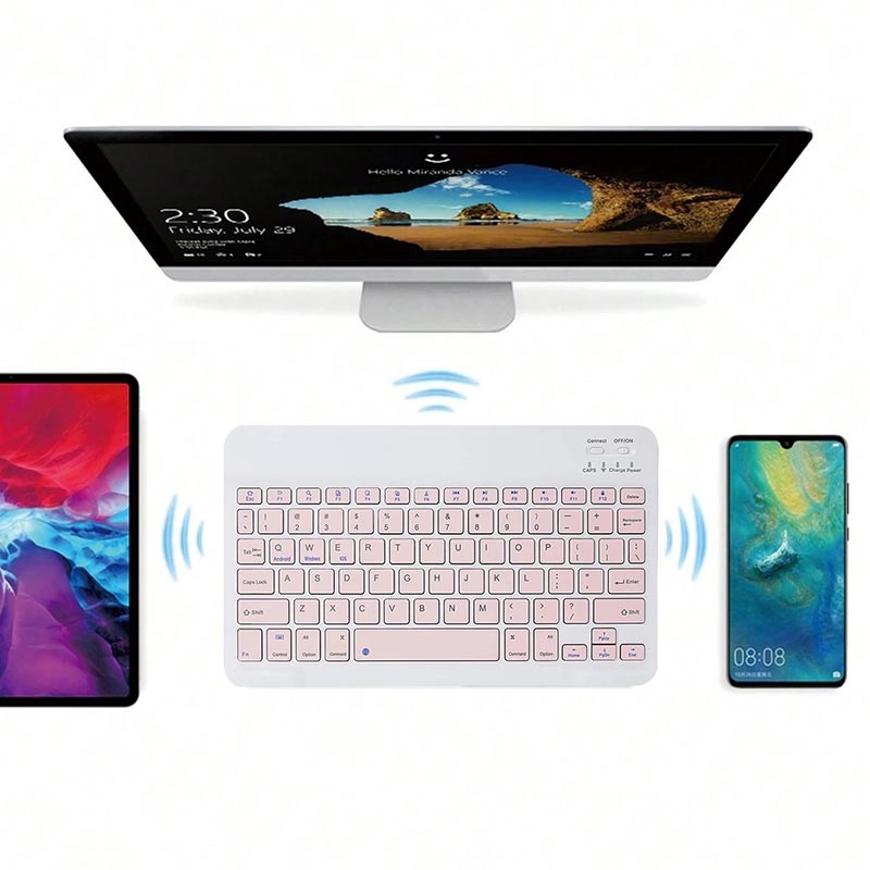 Clavier Bluetooth ultra-mince et silencieux pour PC, tablette, iPad, téléphone, TV - Rose