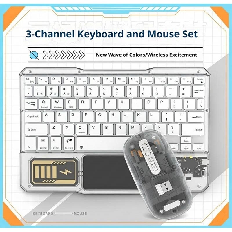 • Ensemble clavier et souris Bluetooth transparent KB333 - Clavier sans fil à 3 canaux avec rétroéclairage RVB et pavé tactile