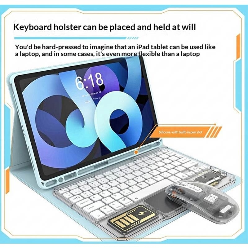 Modernisez votre bureau ou votre configuration sur tablette grâce à l'ensemble clavier et souris Bluetooth transparent KB333. Conçu pour le travail, les études et l'usage quotidien, cet ensemble sans fil combine un clavier compact, un pavé tactile intégré et une souris assortie dans une configuration élégante. Son design transparent avec rétroéclairage RVB lui confère un look moderne, tandis que la connectivité à 3 canaux permet de passer facilement d'un appareil à l'autre.