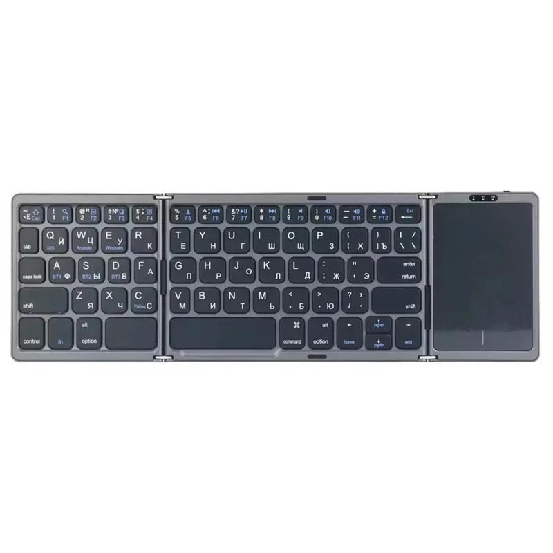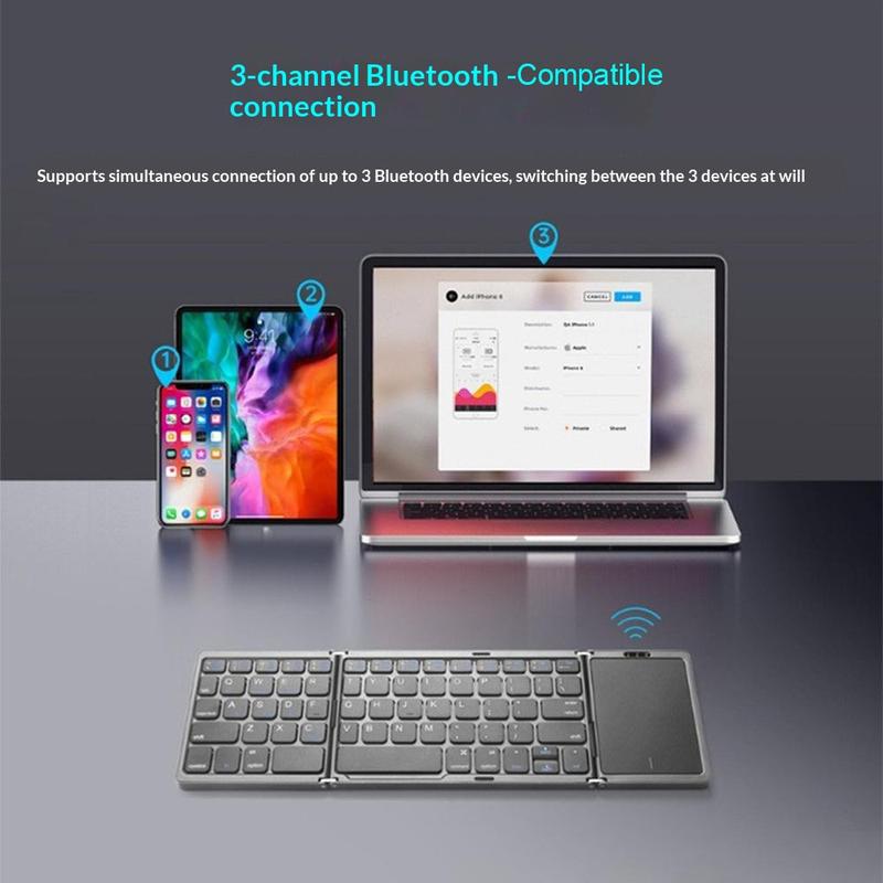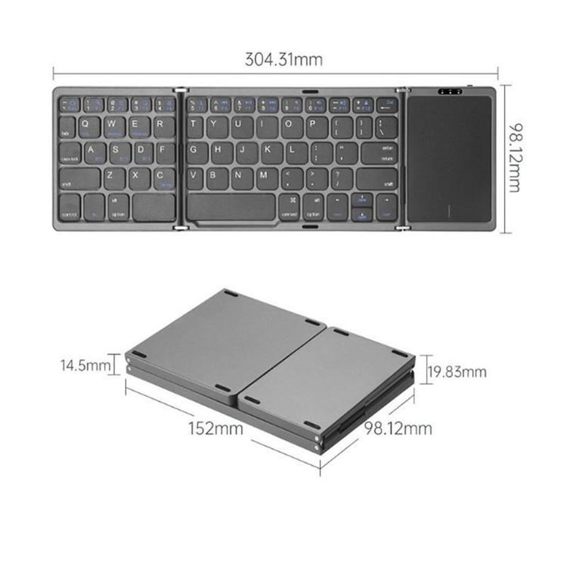 • Clavier sans fil pliable B089 avec pavé tactile (81 touches) - QWERTY, compatible Bluetooth multi-appareils, rechargeable via USB-C, touches silencieuses