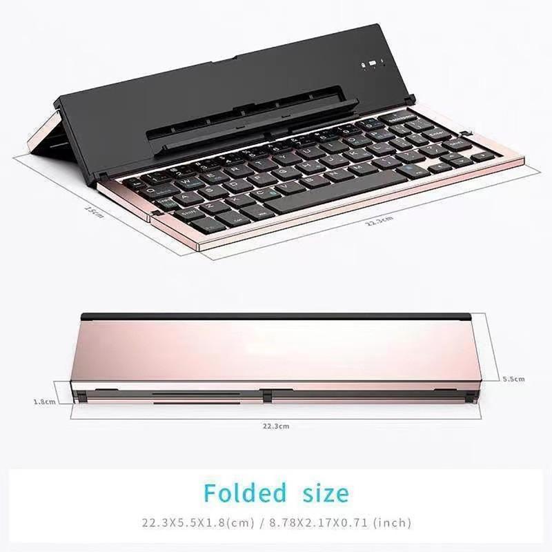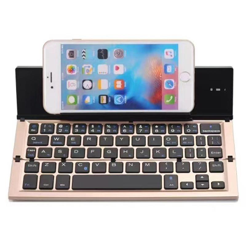 Clavier sans fil à trois volets 608 avec commutation double canal et support - Or rose