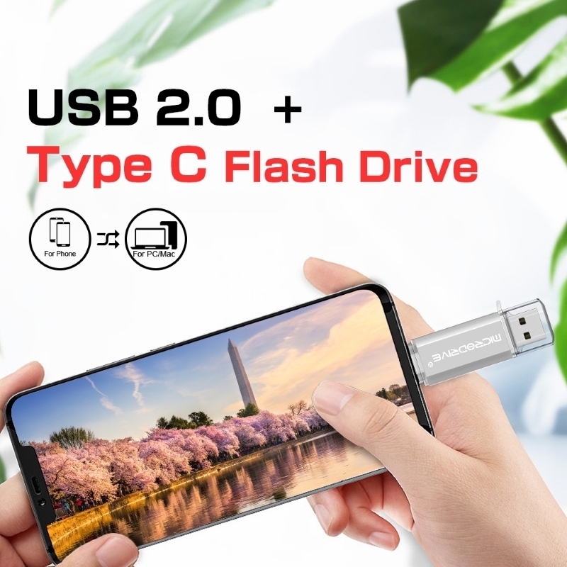 • Clé USB 2.0 / USB-C 2-en-1 de 64 Go de MICRODRIVE - Stockage de données polyvalent pour téléphones, ordinateurs portables et autres