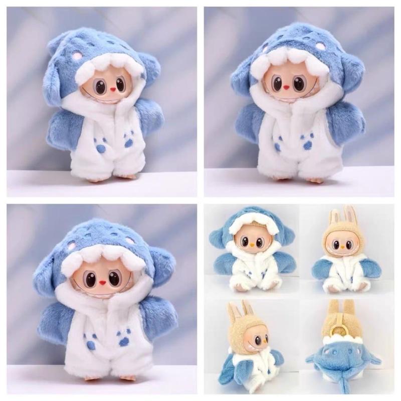 • Combinaison à capuche requin pour poupée Labubu 17cm - Pyjama en peluche pour mini figurine