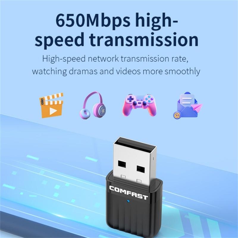 • Comfast CF-811ACV3 Adaptateur WiFi bi-bande - 650Mbps Récepteur réseau sans fil USB pour PC de bureau et ordinateur portable