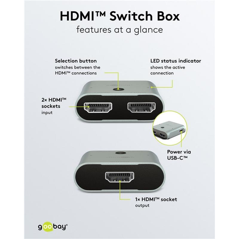 Commutateur HDMI 2-vers-1 Goobay - 8K@60Hz - Gris