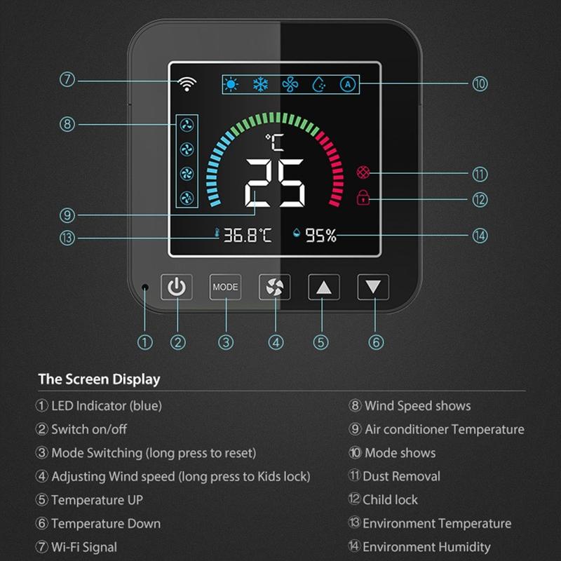 Ce contrôleur intelligent pour climatiseur permet de transformer un climatiseur standard en un système plus flexible et plus pratique. Il peut améliorer votre confort au quotidien en vous offrant une meilleure connaissance des conditions ambiantes et un contrôle accru sur le fonctionnement de votre système de climatisation. Grâce à sa taille compacte, son écran pratique et sa commande infrarouge, c'est un complément utile pour tous ceux qui souhaitent une configuration plus intelligente de leur climat intérieur sans remplacer le climatiseur lui-même.