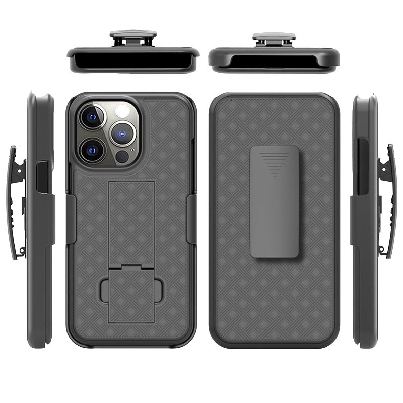 This case stands out with a unique belt design and stylish pattern and gives your iPhone 13 Pro extra protection. Combining plastic and TPU, the hybrid case with a belt clip protects your iPhone 13 Pro from daily wear, drops, scratches, and dust. With the kickstand feature, it is ready for media viewing.