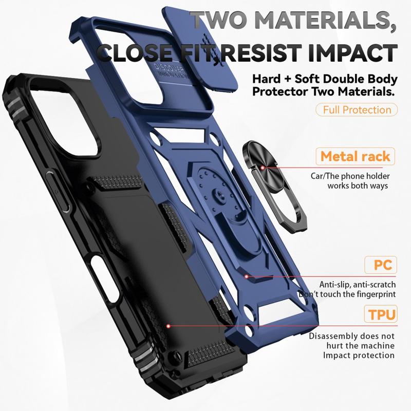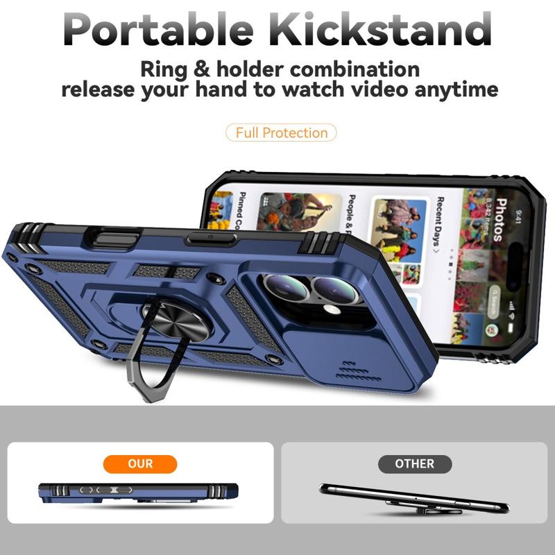 - Coque hybride à anneau rotatif avec protection d'appareil photo pour iPhone 16 Plus