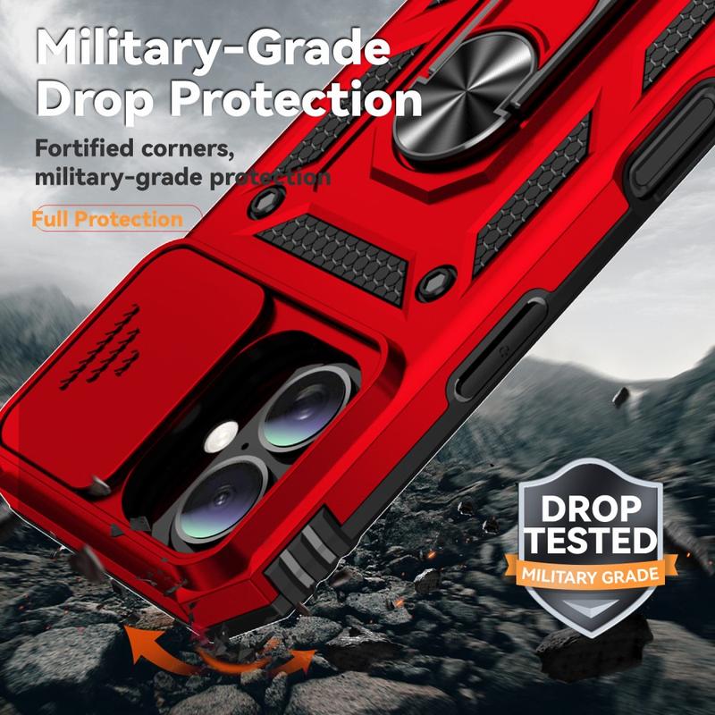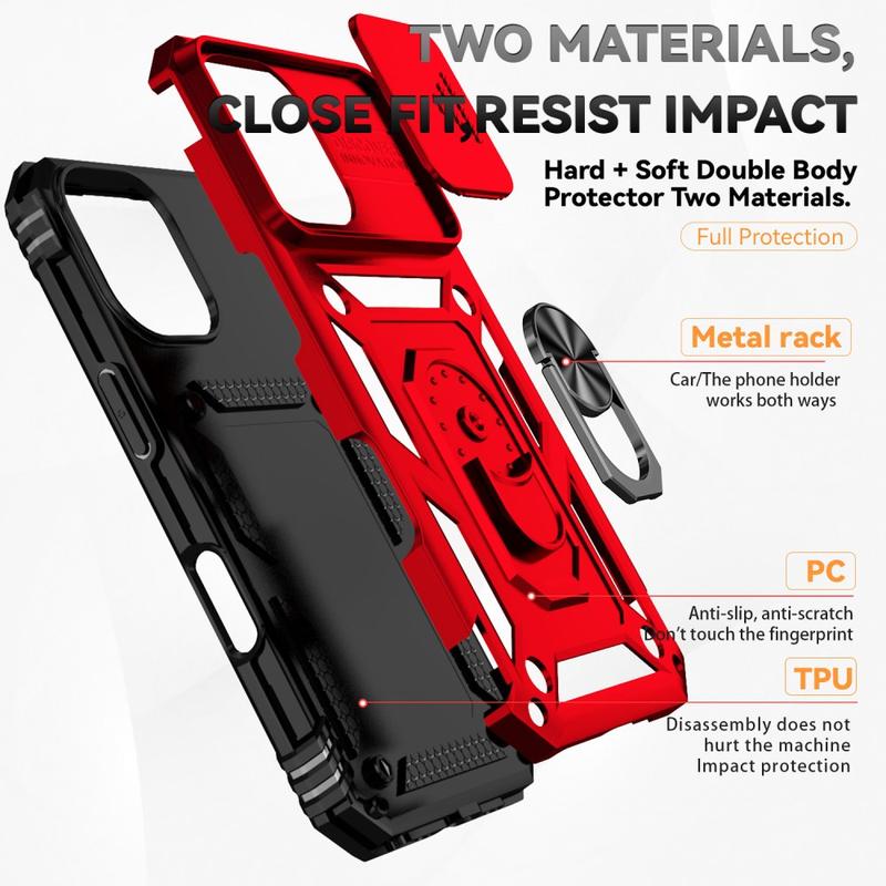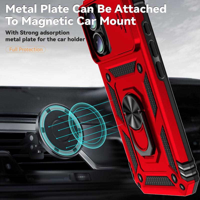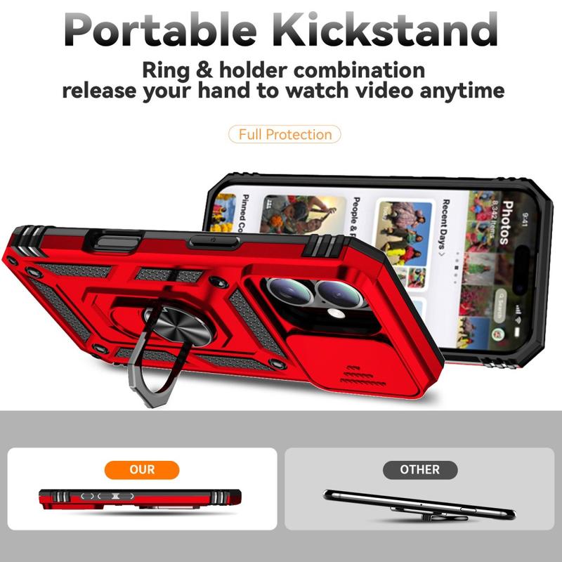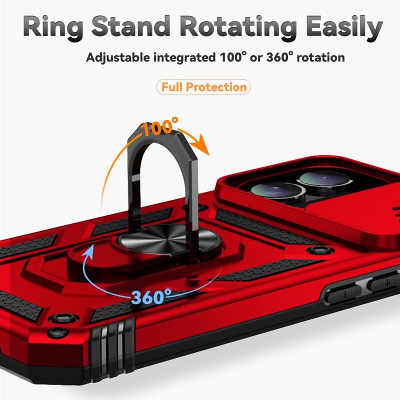 Coque Hybride iPhone 16 Plus à Anneau Rotatif avec Protection pour Appareil Photo - Rouge