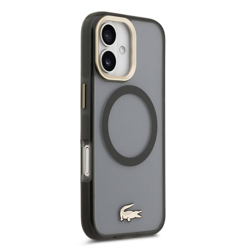 Coque Hybride Lacoste Frosted Finish Gold Logo pour iPhone 17 - Compatible MagSafe, Coque arrière premium avec logo doré et cadre photo