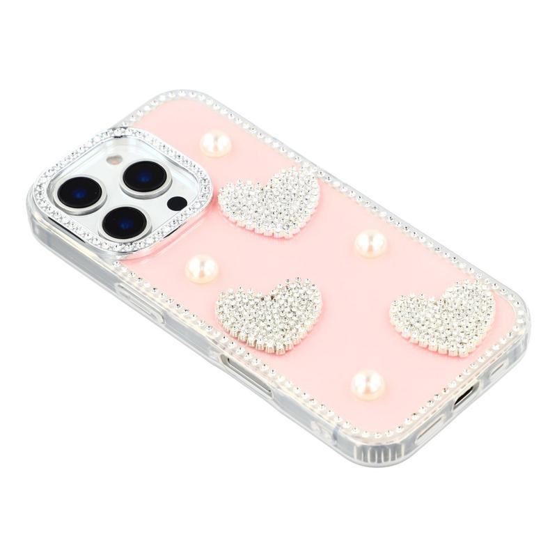 Cet étui pour iPhone 16 Pro Max allie une protection quotidienne fiable à un style glamour. Avec ses strass scintillants sur le pourtour et ses décorations en forme de cœur perlé au dos, il transforme votre iPhone 16 Pro Max en un accessoire de mode tout en le protégeant des rayures et des chocs.