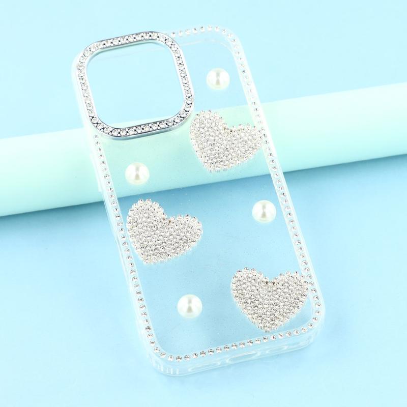 Cet étui pour iPhone 16 Pro allie une protection quotidienne fiable à un style glamour. Avec ses strass scintillants sur le pourtour et ses décorations en forme de cœur perlé au dos, il transforme votre iPhone 16 Pro en un accessoire de mode tout en le protégeant des rayures et des chocs.