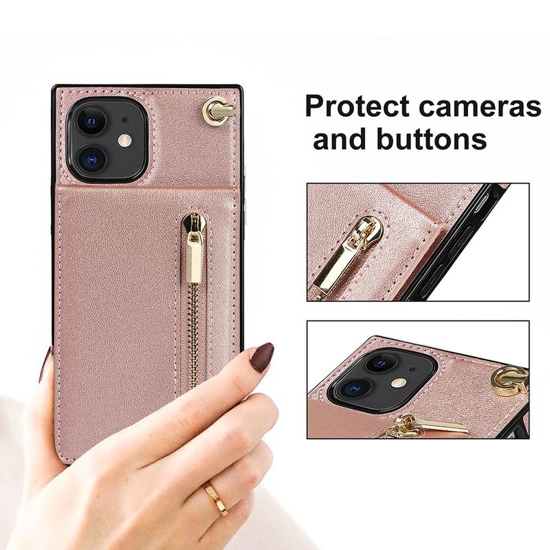 Coque hybride avec portefeuille et dragonne pour iPhone 11